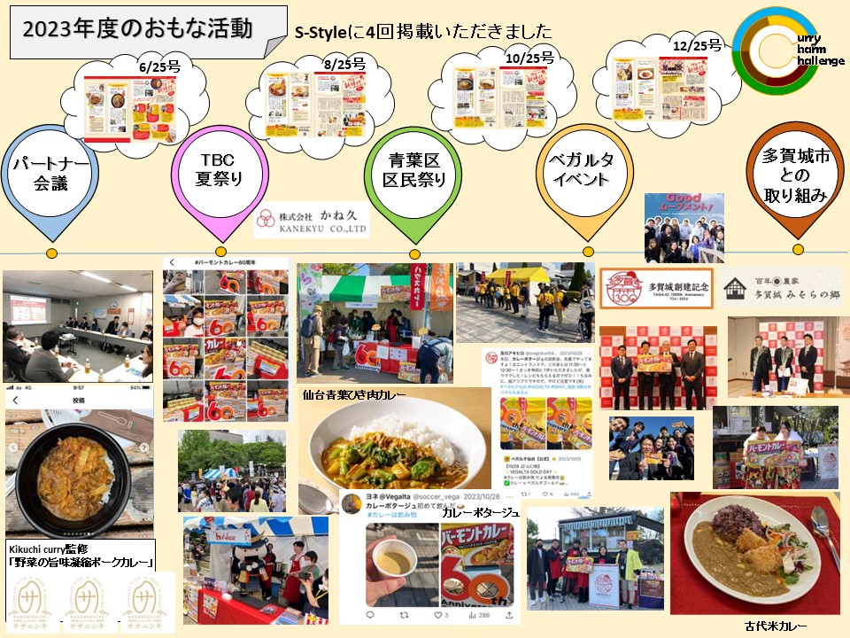 2023年夏より、「1人でも、1食でも多く、カレーの魅力を広げたい」とスタートしたC3プロジェクト。昨年は「tbc夏まつり」や「青葉区民まつり」への参加、『ベガルタ仙台』での試飲イベント、多賀城市との取組みなど、1年を通してさまざまな取り組みを展開してきました。