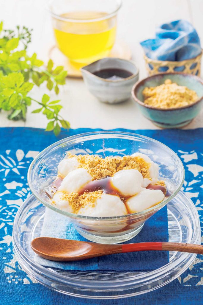 ❸熱が取れたら器に盛り、きな粉と黒蜜をかけたらでき上がり。