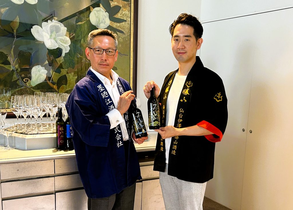 「勝山」の伊澤平輝さん(右)は「普段の『勝山』とはちょっと違うタイプの酒造りに挑戦し、やさしくふくよかな味に仕上がりました。『墨廼江Style』は海の幸に合う味ですね」とコメント。