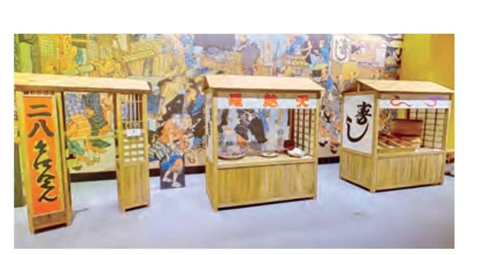 江戸っ子が愛したファストフードとは?寿司、天ぷら、そばなど、江戸時代の屋台を再現した展示はフォトスポットとしても人気