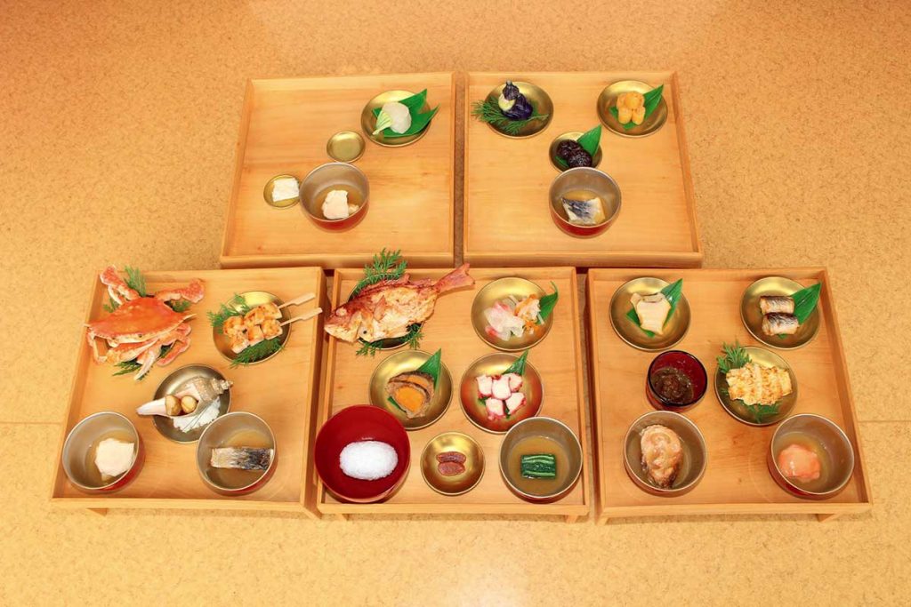 織田信長が徳川家康をもてなした本膳料理の再現模型。奥村彪生監修。御食国若狭おばま食文化館蔵