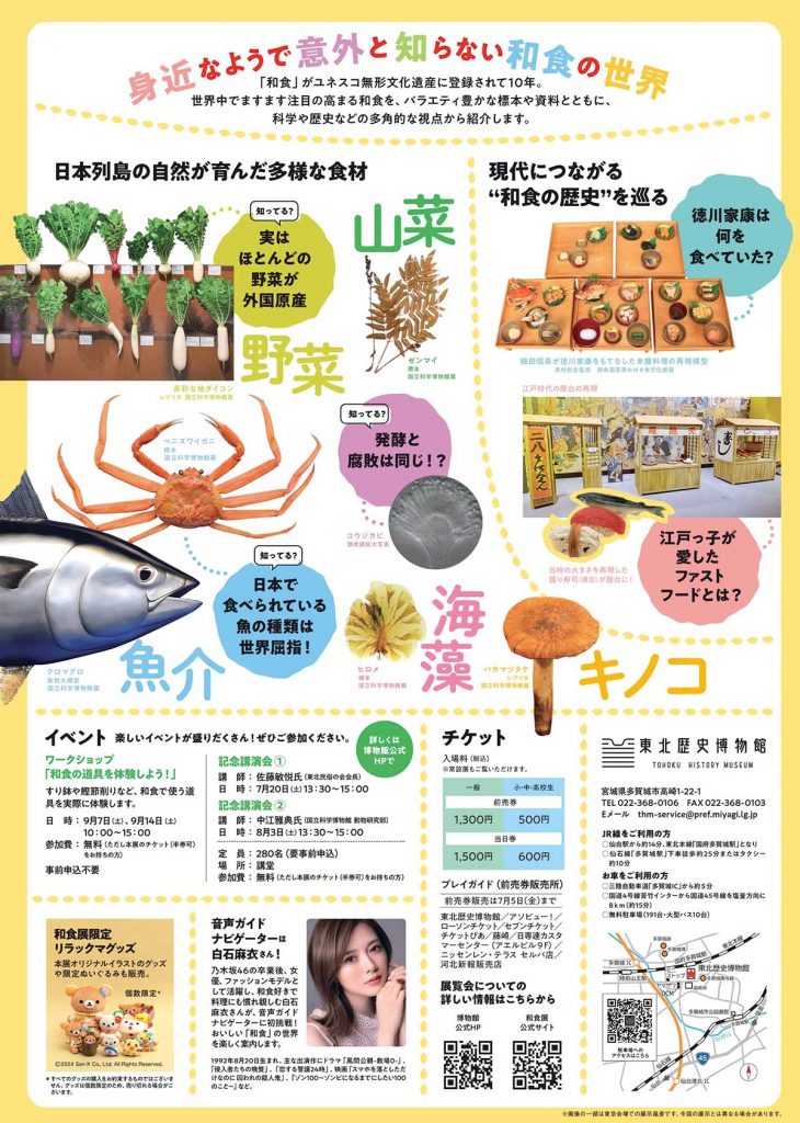 ユネスコ無形文化遺産に登録されてから10年、世界で広く「washoku」として知られるようになってきた和食。その魅力を、バラエティ豊かな標本や資料、映像展示とともに多角的な視点から紹介する企画展。