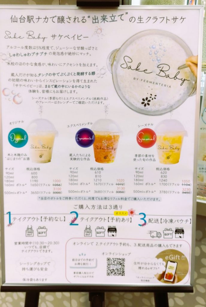 こんにちは、編集部アルデンテです。今日は仙台市青葉区中央、仙台駅1階tekute diningにある『SENDAI STATION BREWERY Fermenteria』の新商品「サケベイビー」を紹介します。