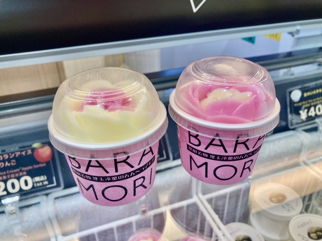 青森(弘前)からは、市民に愛され続ける「カランカランアイス」(1個200円/ブルーハワイ・りんご味)が。秋田からは名物「ババヘラアイス」(1個400円)など各県自慢のご当地アイスがラインナップ!