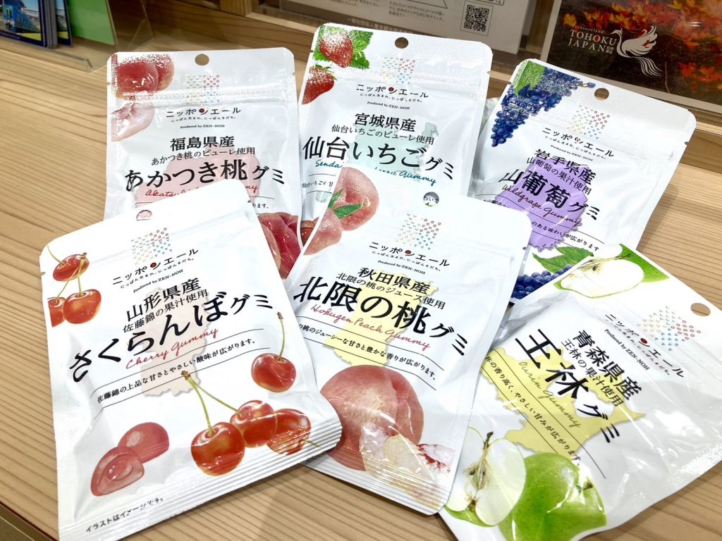 観光案内所には、アイスの他にも東北6県にまつわるグミや、キューブ型のお米もあるので、ちょっとしたお土産にもおすすめです!