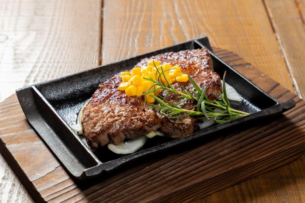 イチオシのビーフは、赤身のおいしさを重視して選んだUS&オージー産のものを、ビッグボリュームで提供しているとか。専用の炉で焼き上げたお肉を、あつあつの鉄板にのせてサーブ。このボリュームたっぷりのお肉には、ニンニク醤油バター系、ケチャップ系、スパイス系、甘辛コリアン系、ハーブミックス系の5種類のソースを、自分好みに使いながら食べることができますよ。
