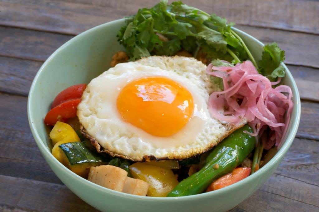 チキンと野菜たっぷりのヘルシーな「Rielat風お野菜ごろごろガパオBOWL」(918円)