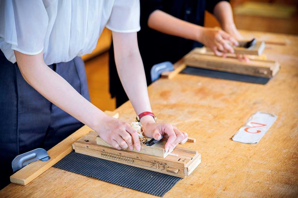 木に触れながら森の恵みや木の文化を見つめなおす「木育」を推進する山形県。キットの手順に沿って簡単に箸づくりが楽しめるなど多彩なプログラムを用意