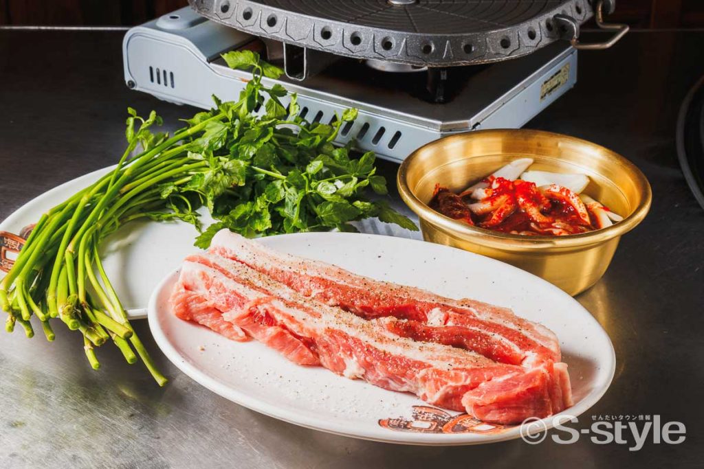 「セリチュクミサムギョプサル 」(サンチュ付2人前・税別4,280円)