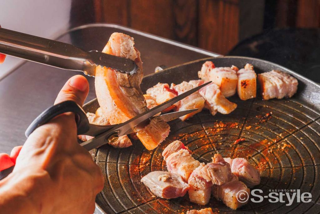 ハルバンではセリサムギョプサルがとても人気とのことで、最初はセリサムギョプサルで楽しんでいただきます🥓