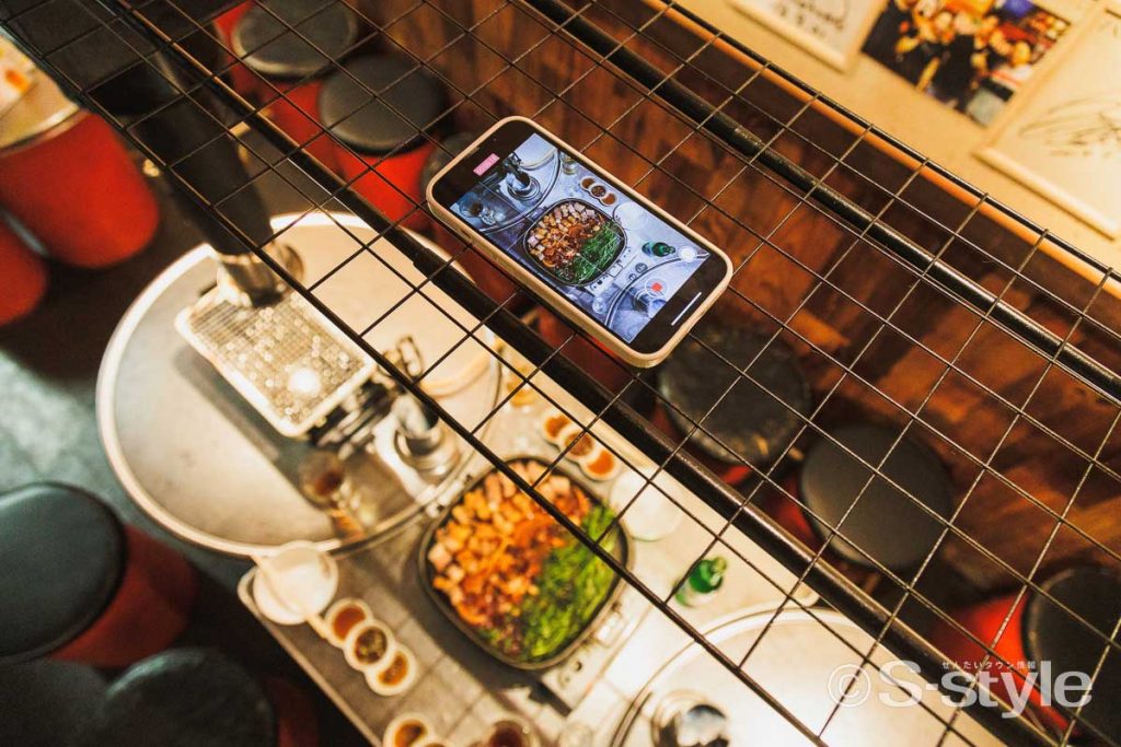 テーブルの真上に設置されたラックに携帯を置き、写真を撮ったり動画を回したりして撮影する方法が今話題なんです✨