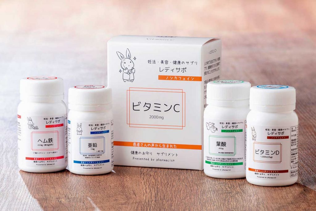薬剤師の知識と経験を生かし、地域の健康維持に貢献することを信条とする『カミツレ薬局』。これまで多くの患者さんの声に触れてきた薬の専門家が、女性ならではの悩みにこたえる女性向けサプリメント「レディサポ」を発売。このサプリは特に“不妊”に悩む方が安心して使用できることを重要視して開発されました。ラインナップは「葉酸」「ヘム鉄」「亜鉛」「ビタミンC」「ビタミンD」配合のサプリメントを用意。白衣を着たウサギのキャラクターが目印の女性のためのサプリが、安全な妊活と健康美をサポートしてくれます。