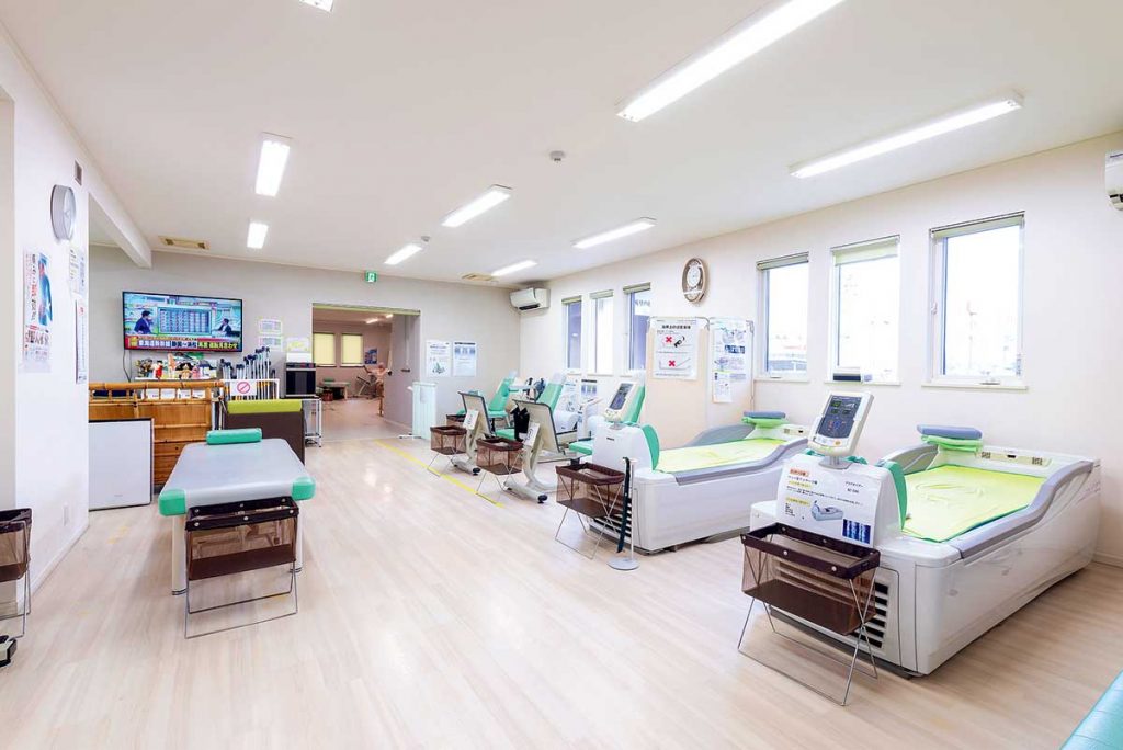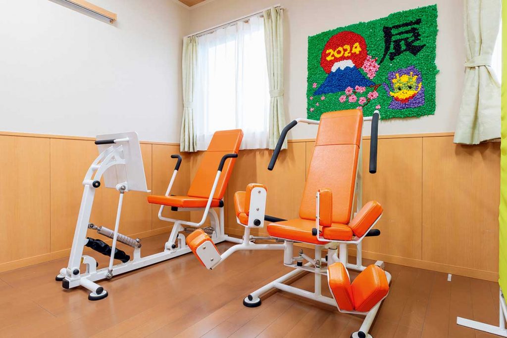 デイサービス内にトレーニング器具を設置。療養はもちろん運動不足の解消やリハビリにも励めます