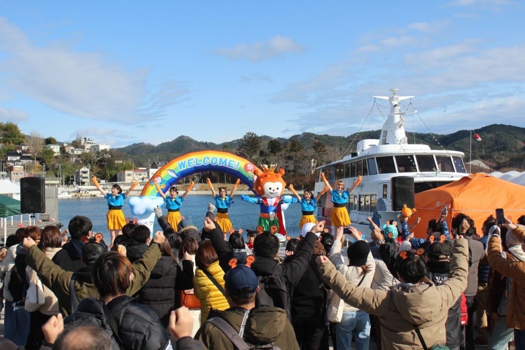 ステージの上のホヤぼーや、海の子ガールズ(SCK GIRLS)と一緒にレッツダンス!