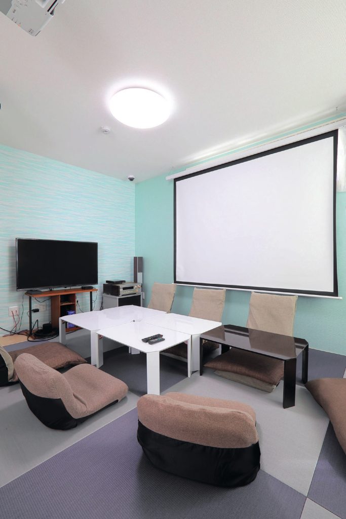 各棟にシアタールームがあり、スクリーンを降ろして映画鑑賞会をしたり、大画面でゲームをしたりと、大活躍
