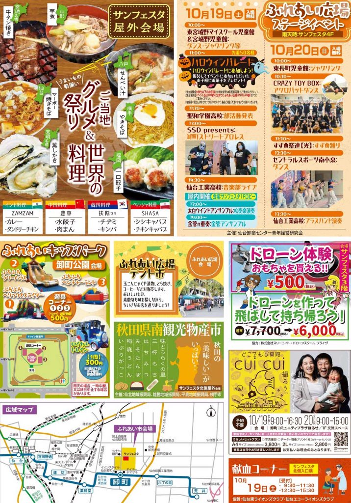 メイン会場『サンフェスタ』へは地下鉄東西線卸町駅より徒歩10分。さらに無料駐車場を1,000台用意しているため車でもOK。