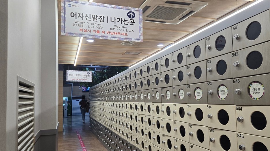 まずは鍵と同じ番号のロッカーに靴を入れます!女性は向かって右手側のロッカーです🚺
