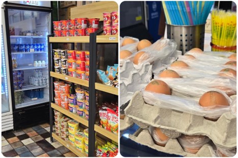 フードコートもあり、うれしい24時間営業💓お腹が空いたらいつでもご飯が食べられるし、お菓子やカップラーメンも充実しているので手軽に食事したい人にもオススメ✨