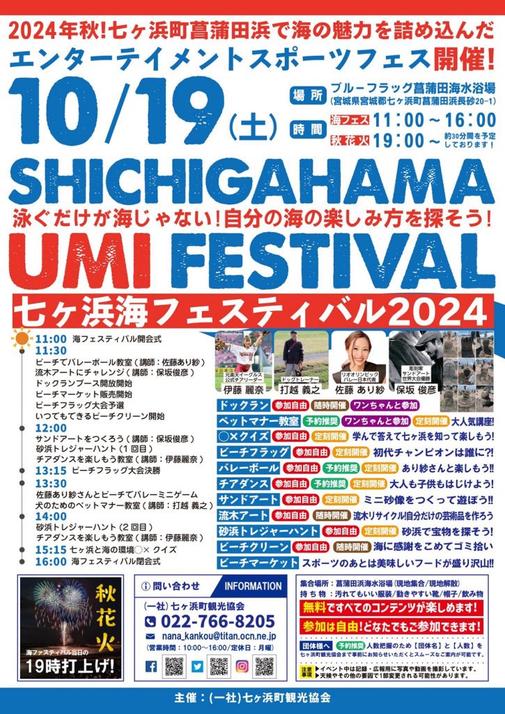 海水浴場としてお馴染みの七ヶ浜町・菖蒲田浜で、秋深まる10月中旬に“フェスティバル”が開催されます。