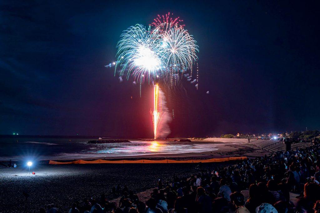 菖蒲田浜での打ち上げ花火は、海上から打ち上げになります。