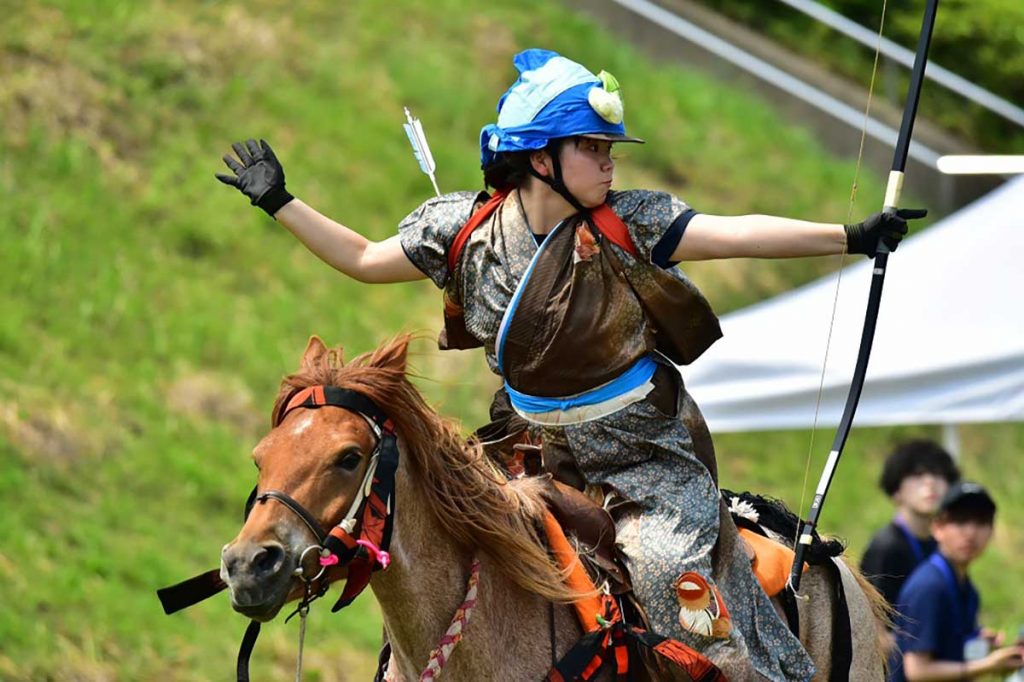 馬に乗って和装姿で颯爽と矢を射る姿は凛々しく、迫力があります