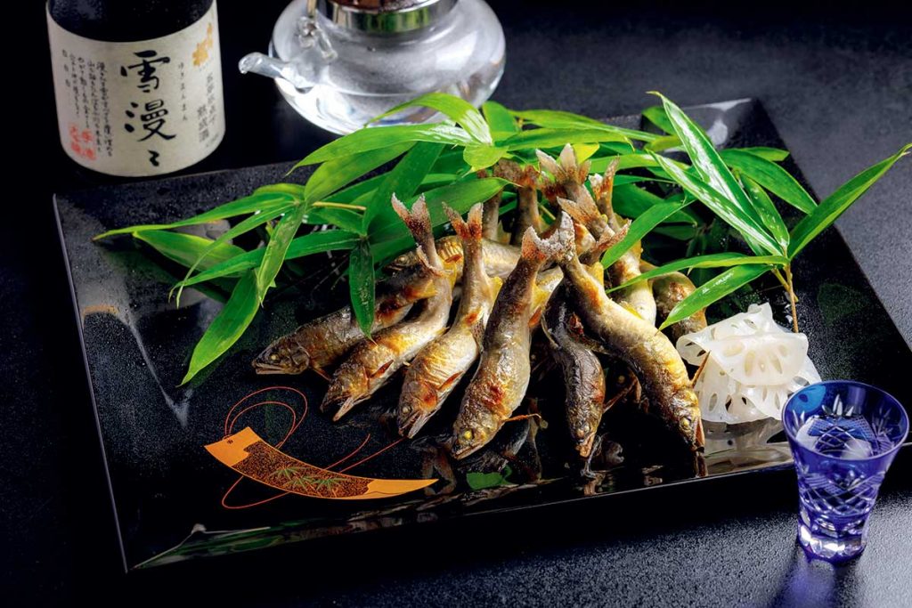 滋賀県琵琶湖の澄んだ水で育った、薫り高い鮎をシンプルな塩焼きで。秋の「子持ち鮎」を経て11月初旬までのお楽しみです