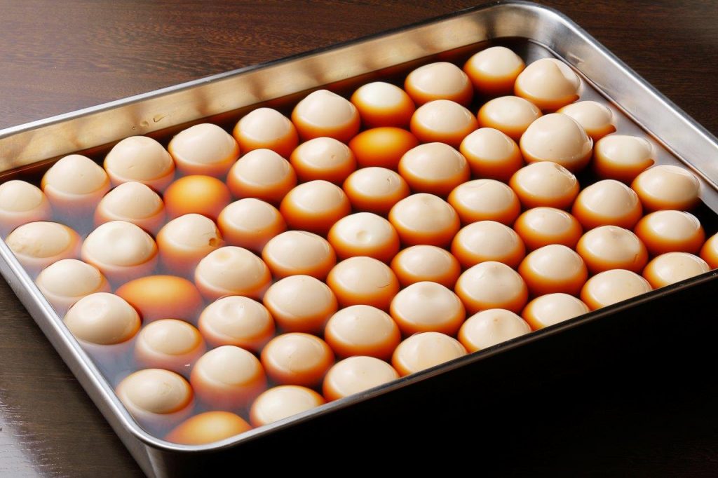 秘伝の特製ダレに半日間漬け込み、 1日寝かせた半熟卵。タレをしっかりと染み込ませた、とろりとこぼれる黄身は極上の調味料だ