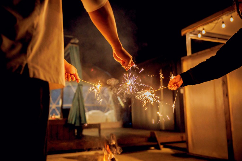 受付では花火も販売しており、各サイトで楽しめる。冬の澄んだ空気できれいに発光する手持ち花火でロマンチックな時間を演出