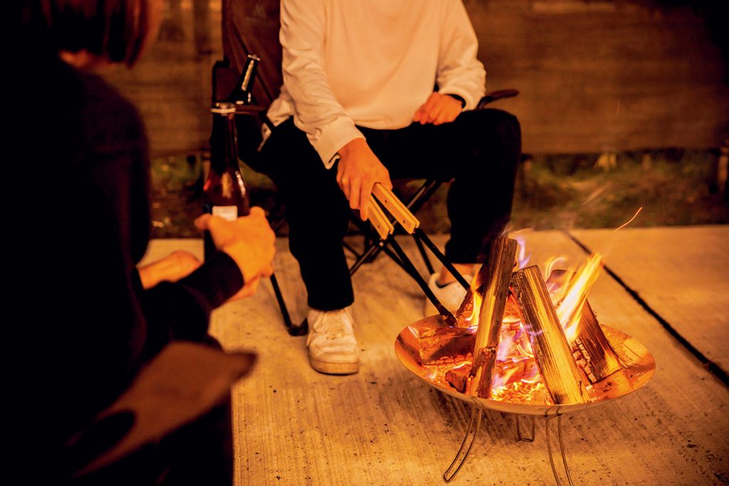 プレミアムなテントサイト内には、焚火が出来るスペースも用意。炎の揺らぎに癒されながら、まったり星空を眺めよう