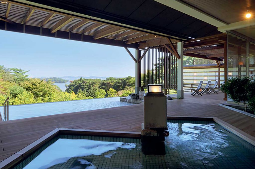 最上階の露天風呂やラウンジ、お部屋から松島湾のオーシャンビューが望める温泉リゾー ト。