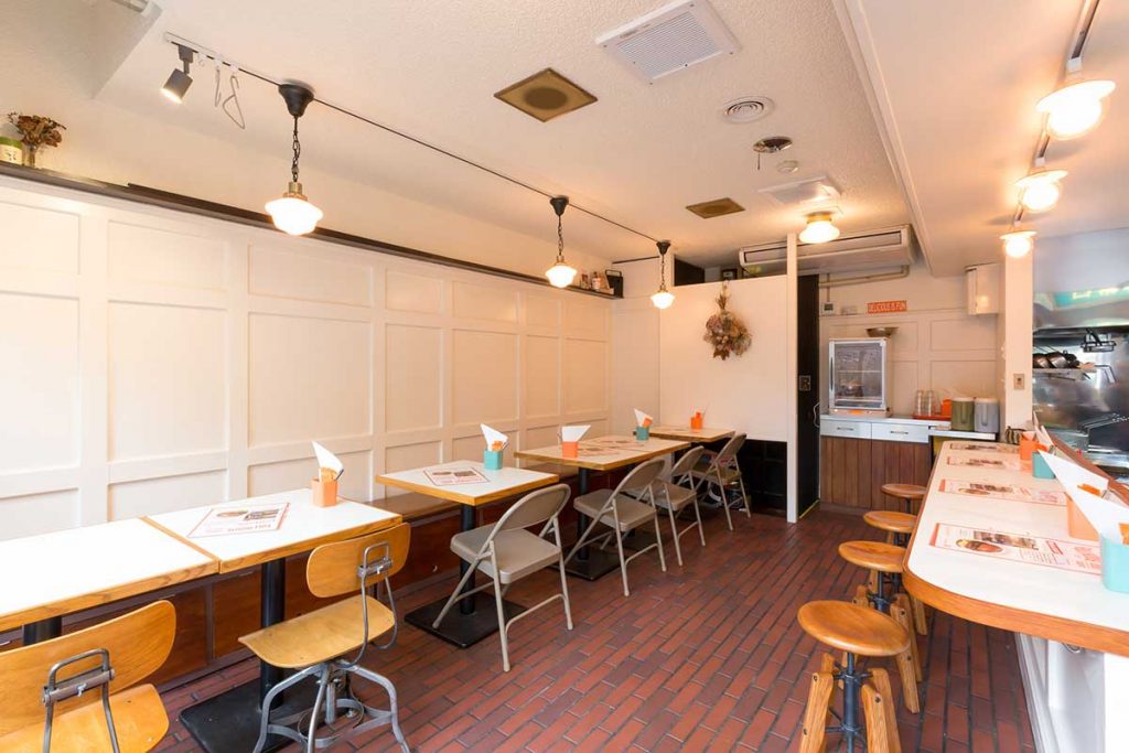 古き良きアメリカのダイナーを思わせる店内。テーマカラーのオレンジを使って明るくアットホームな雰囲気に