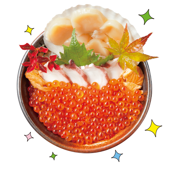 春夏秋冬、季節ごとに内容が異なるキラキラ丼。冬は鮮度の高い極上イクラを贅沢に盛り付け。口の中でプチプチと弾け出すイクラの旨みがたまらない!