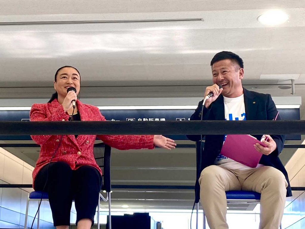 試合の熱気冷めやらぬ中、登場したのは「センダイガールズプロレスリング」の代表・里村明衣子さん。今回は、東北と世界とつなぐ仙台空港が舞台ということで「旅」をテーマにトークが行われました。
