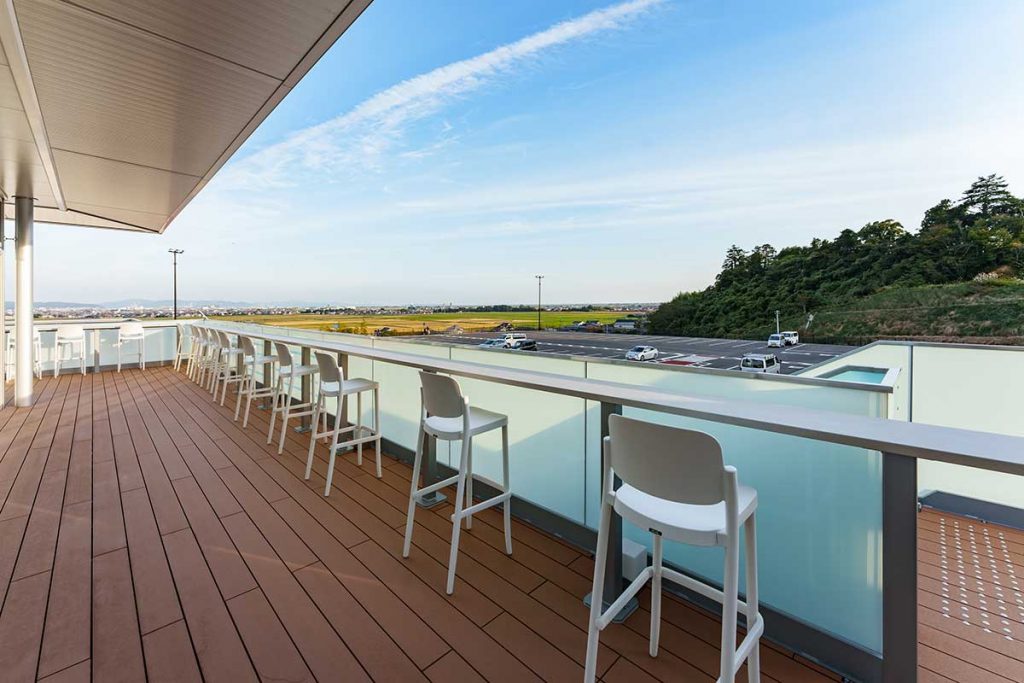 展望デッキでは、ブルーインパルスの訓練飛行を見ながらおいしいご飯を食べることもできます。