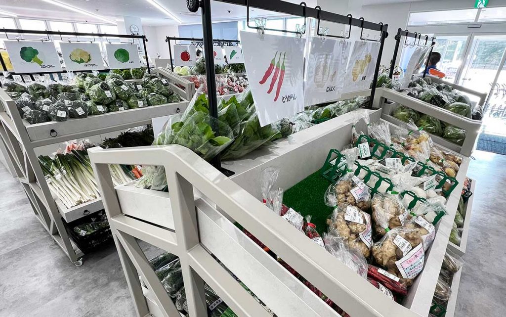 1階の物販エリアでは、採れたて新鮮の野菜や地元の特産品を販売しています。