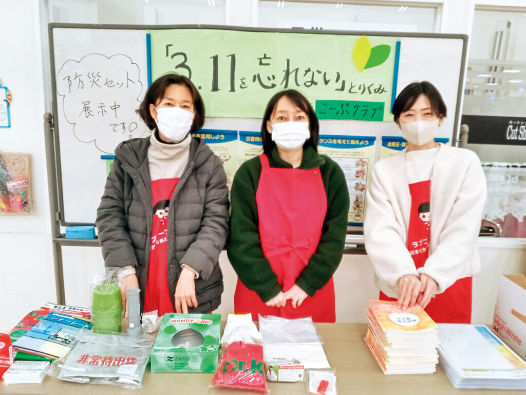 災害を風化させず、備えの大切さなどを呼びかける取り組みを毎年継続して行っています。開催会場や日程などの詳細は随時ホームページに掲載。「3.11を忘れない取り組み みやぎ生協」で検索し、ぜひ近くの会場に足を運んでみてくださいね。