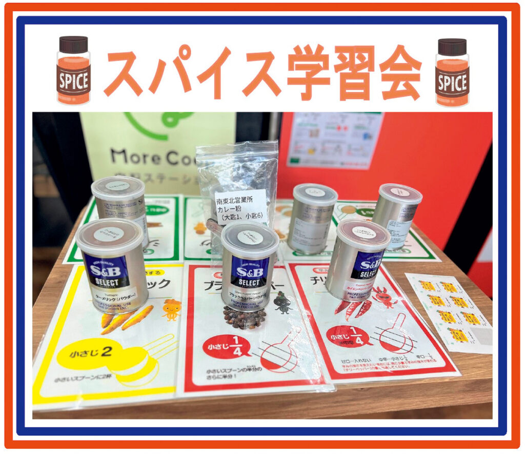 知ればもっと料理がおいしくなる、スパイスの世界観がもっと広がる学習会。S&Bさんから講師を迎え、スパイスの効果や特徴、使い方などを学びます。