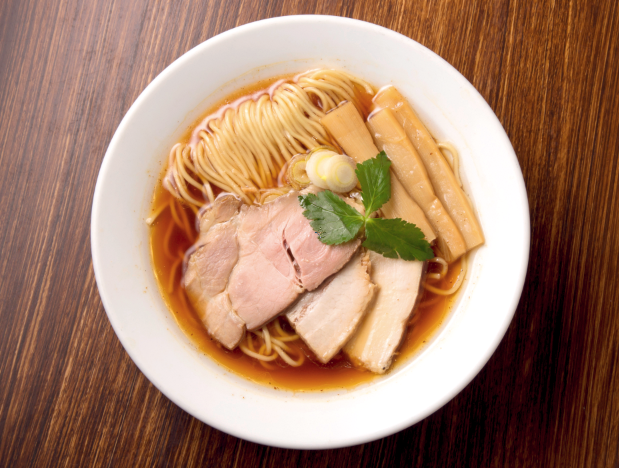 「飛魚だし醤油そば」(750円)※麺の大盛+50円。鶏の清湯スープに香ばしく焼き上げた飛魚のダシを加え、コク深さとあっさりとした後味を実現。のど越しの良い自家製中細ストレート麺と絡めて頬張れば、口の中いっぱいに魚介の香りが広がる