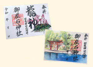 御朱印…田沢湖とともに拝殿が描かれた御朱印のほか、干支にちなんだものなど複数種類が頒布されます