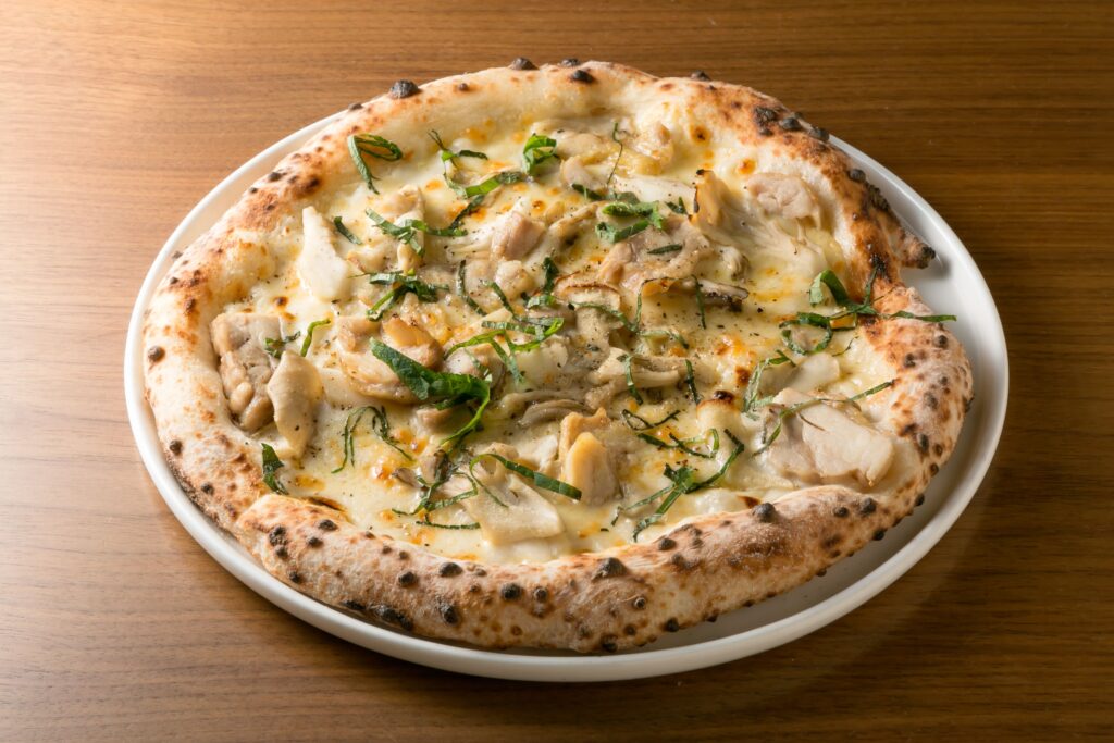 舞茸とチキンの香草ピッツァ(1,750円) ※写真は限定メニューのため、冬のフェアメニューとは異なります