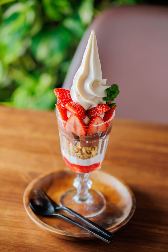 登米市産イチゴを使用した「季節のヴィーガンパフェ」(1,600円)