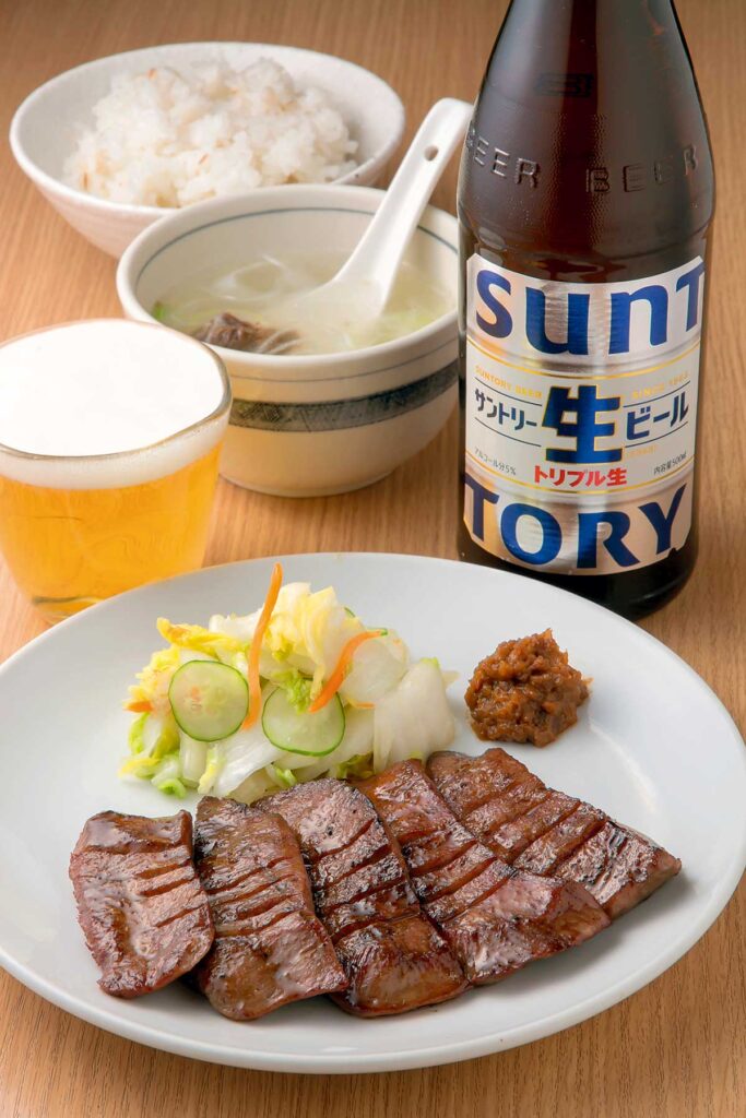 観光客にはもちろん、地元・仙台の人にもおいしい牛たんを気軽に味わってほしいと、リーズナブルな価格のメニューを揃える牛たん専門店です。熟練の職人が特製ダレを一枚一枚丁寧に手もみで味付けして熟成した牛たんは、やわらかく旨みがあふれる味わい。仕事帰りにふらっと寄って、牛たんとサントリー生ビールで晩酌するのにぴったり!