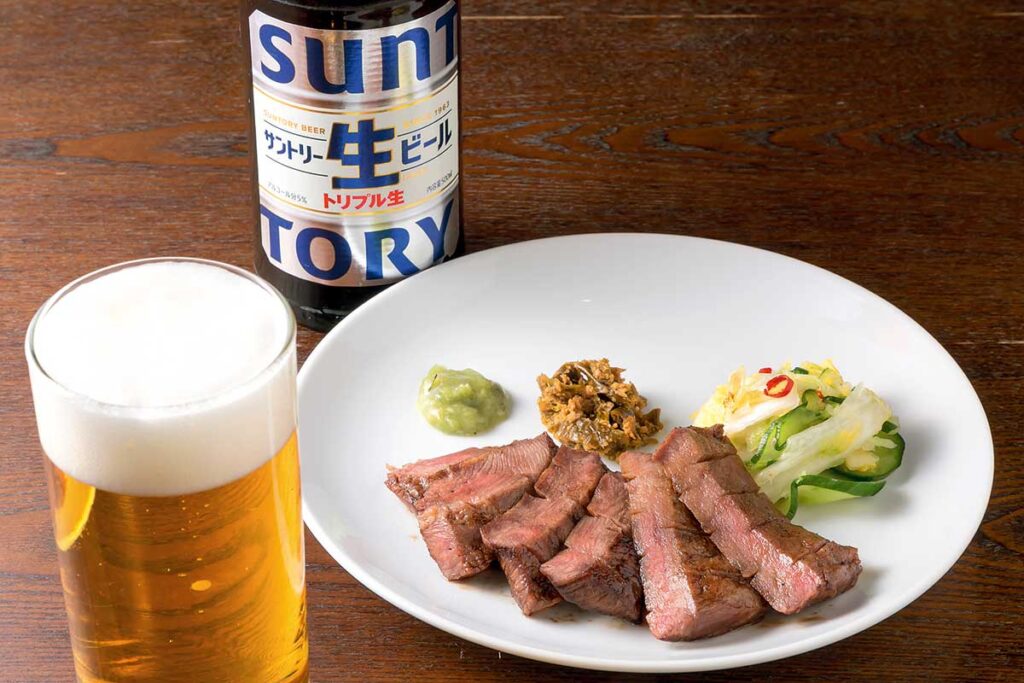 1本からわずか3〜4割しか取れない、たん元に近い霜降りがうつくしくやわらかい部位のみを使用した、こだわりの逸品が揃います。極上の素材を活かし、一枚一枚丁寧に職人が手仕込みして熟成する牛たんは、厚切りでもやわらかくジューシー! 「ゆで牛たん」や「特選牛たん刺」など多彩な牛たん料理も、サントリー生ビールとの相性抜群ですよ。