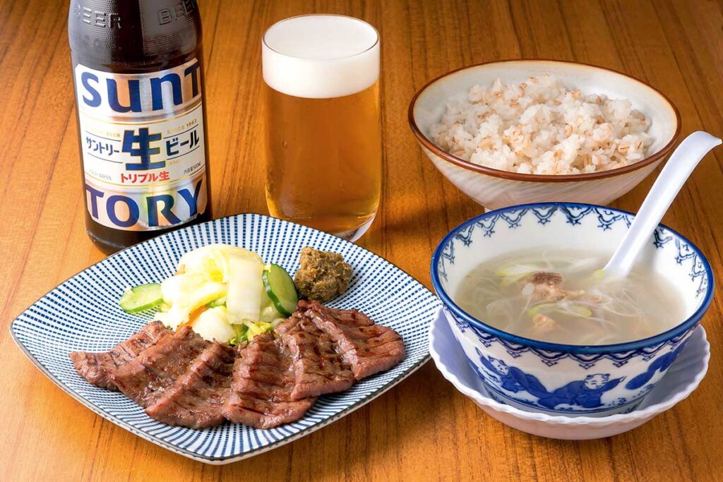 牛たん職人の店主が素材の厳選から切り方、熟成、炭焼きまで、すべての工程にこだわり提供する牛たん焼きは、肉厚ながらサクッと噛み切れるのが特徴です。肉汁の旨みがギュッと詰まった牛たんは冷めてもおいしいほど! ご飯もビールもよくすすみますよ。