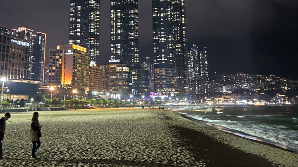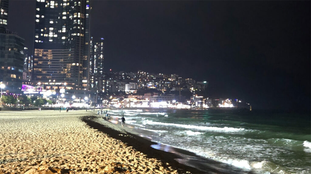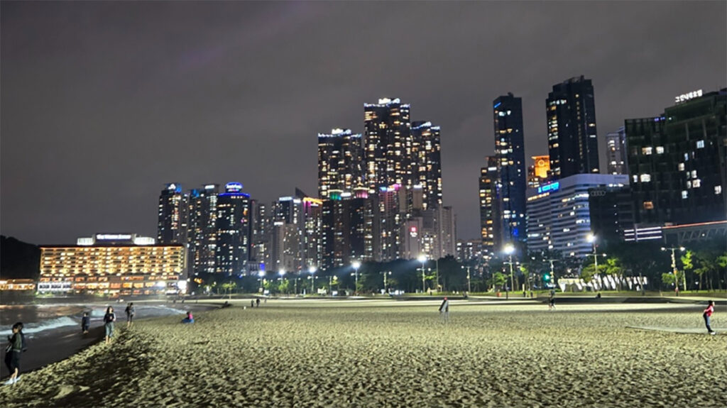 国内外から観光客が訪れる人気観光スポット『海雲台ビーチ』は、白い砂浜が約1.5㎞以上続く人気リゾート地。