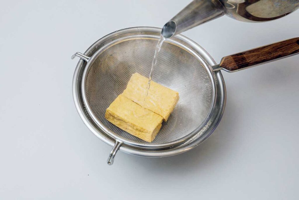 (※)ざるにのせて熱湯を回しかけるだけでOK