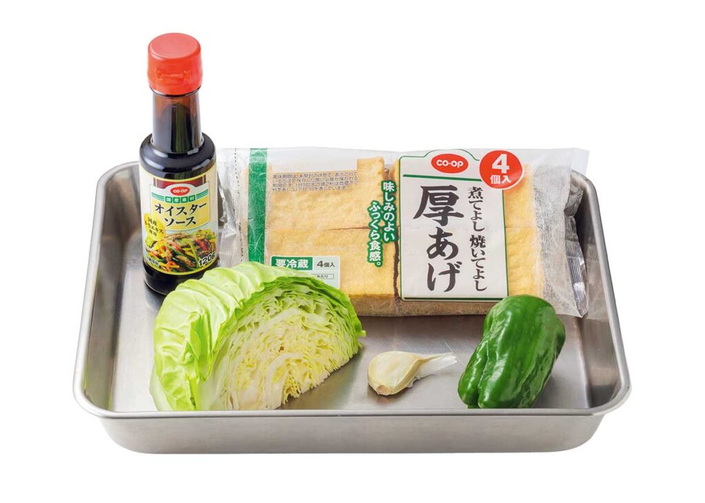 <下ごしらえ>時間があれば厚あげは油抜き(※)し、キャベツは大きめの一口大、ピーマンは短冊切りにする。