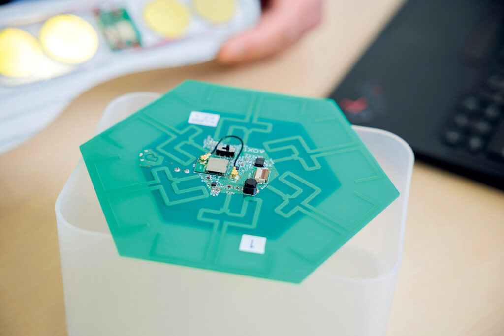 もとは工場内での人員配備や作業の流れを管理する位置情報システムを開発・提供する『ライフラボラトリ』。実は今、そのシステムは医療・介護の現場やヘルスケア分野においても注目されており、代表の鈴木和浩さんは新たなプロダクトの開発を進めています。「今、特に必要とされているのが老人ホームなどの介護施設。認知症の方が施設から出て徘徊するという事例が多く、そんな方たちを見守るのに位置情報が活躍します。ただ身に着けるものだと取れてしまうこともあるので、着目したのがシューズのインソ一ル。現在は運用へ向けて試験を重ねています」。