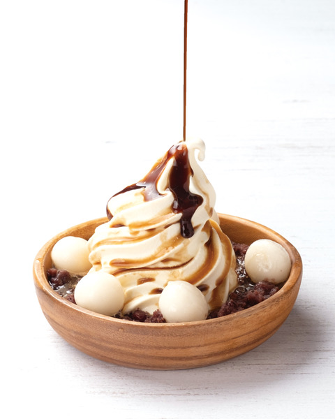 『主婦の店さいち』のあんこと『Monsieur Masuno ARPAJON』ブレンドのミルキーなソフトクリームに白玉をトッピング。