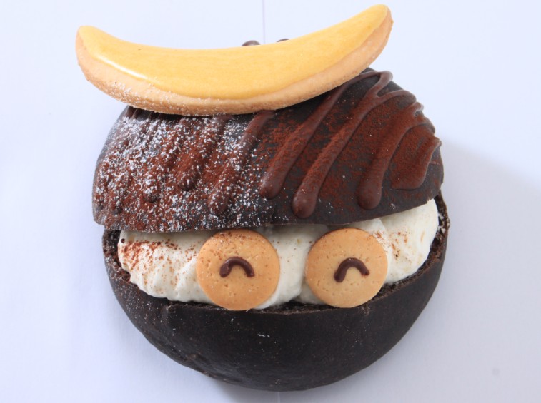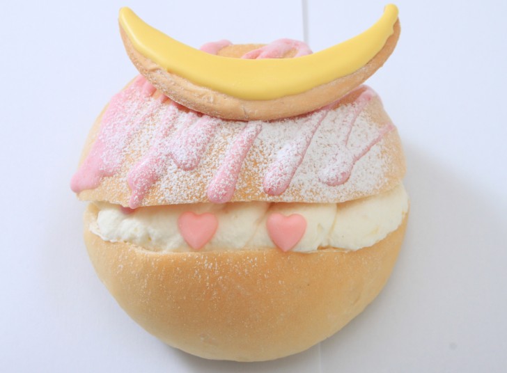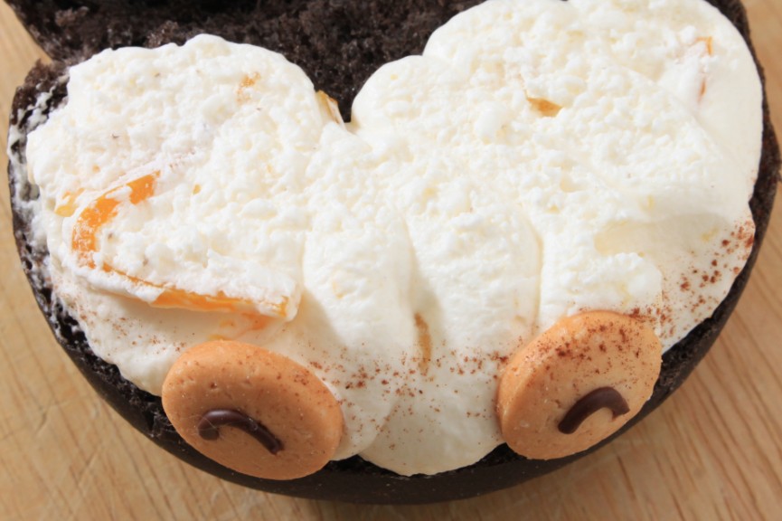 「編集部の皆さんの羽生選手への感謝の気持ちをパンにするためにがんばりました! 大きな三日月のアイシングクッキーで、“仙台の誇り”であることを表現。生クリームにプーさんの大好きなハチミツを入れたのもポイントです。「えとふぇ」ならではのふわふわ生地と、羽生選手のように爽やかなユズクリームを楽しんでくださいね!」と店長の横田さん